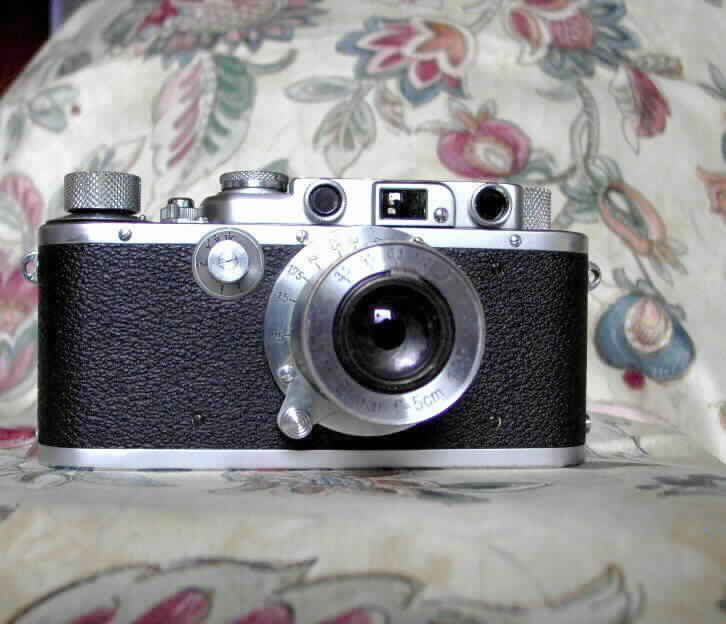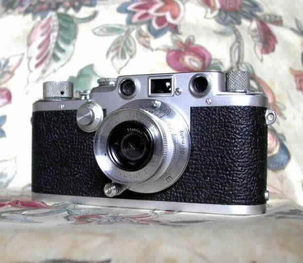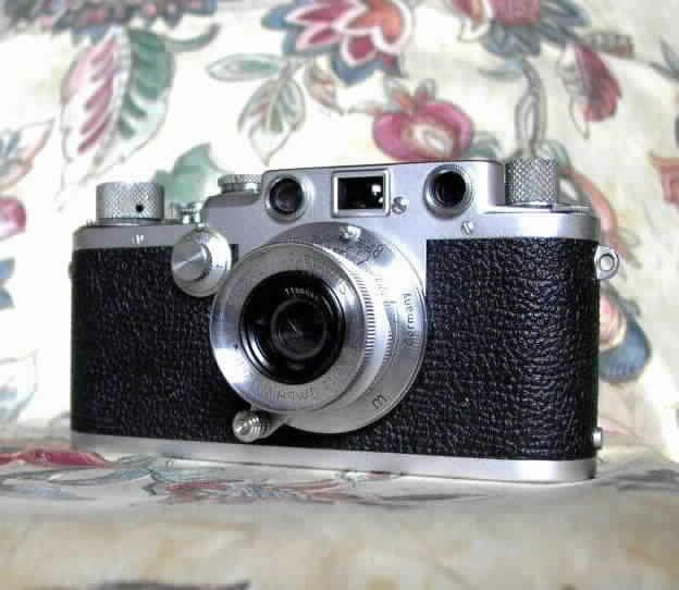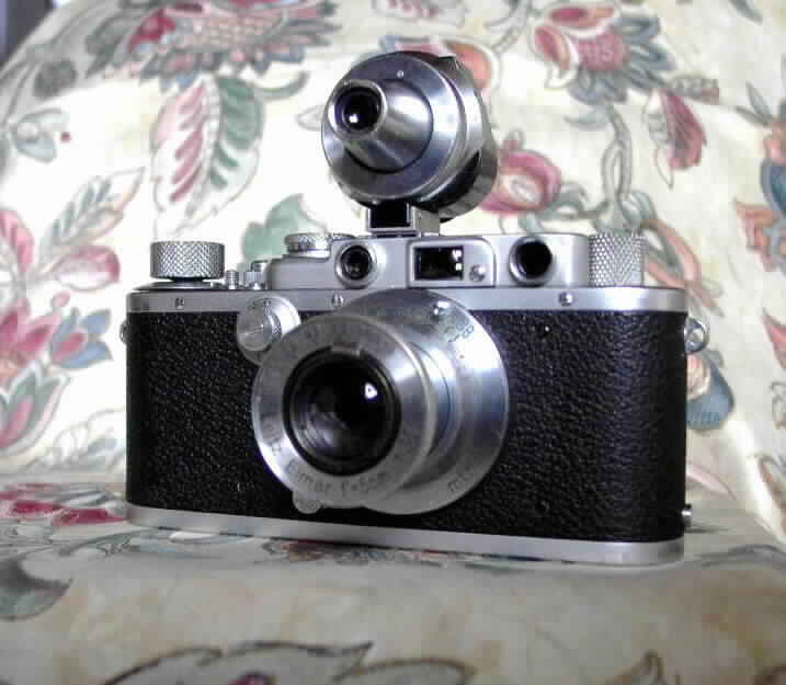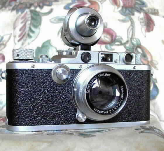 - Leica III (Gehäuse), Bj. 1936; mit Leitz-Objektiv "Summar" 1: 2/50 mm + Universalsucher "VIOOH" (35 - 135 mm) -